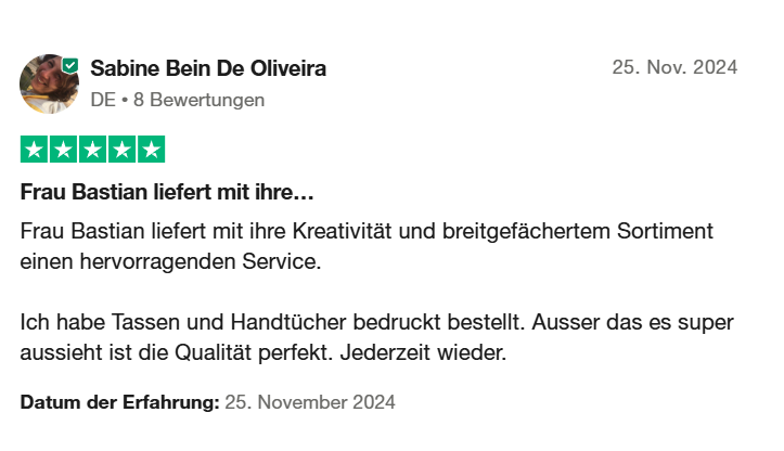 Meine individuell gestalteten Werbegeschenke schaffen bleibenden Eindruck – und steigern den Umsatz.“